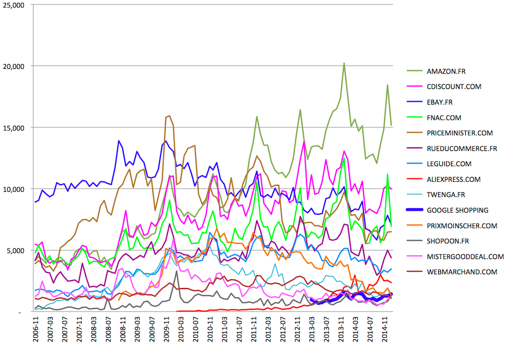 En outre, selon Google, il existe moult services spécialisés tels que Amazon, Idealo, Le Guide, Expedia ou eBay. Par exemple, Amazon, eBay et Idealo de Axel Springer sont les trois sites e-commerce les plus populaires en Allemagne.
